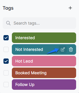 Hit the 'labels' option, and a dropdown menu with various filters will pop up. Choose from predefined labels like 'Interested', 'Not Interested', 'Hot Lead', 'Booked Meeting', 'Follow Up', 'SPAM', and 'Wants to chat.'
