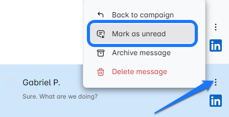 This is the default view of the inbox, where you can see messages from all the campaigns you’ve run on the Merakyn. You’ll also get a glance at messages from all three inboxes that the Smart Inbox merges: LinkedIn, Sales Navigator, and Email 📧.