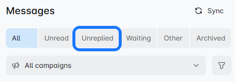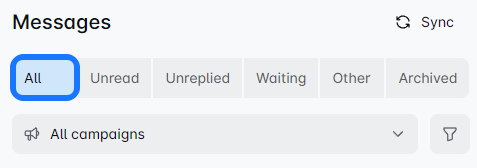 Once you connect your LinkedIn profile to the Merakyn, this filter shows your non-campaign-based messages. ❗ Messages sent before connecting your account won't appear here.