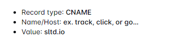 - Since we’re creating a subdomain, you need to use the prefix you’ve created (e.g., track, click, go, etc.) and paste it into Merakyn under the Your subdomain field.